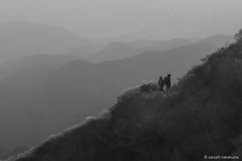 At the peak of the mountains in Unzen, Japan, a light frost covers the tips of the brush.